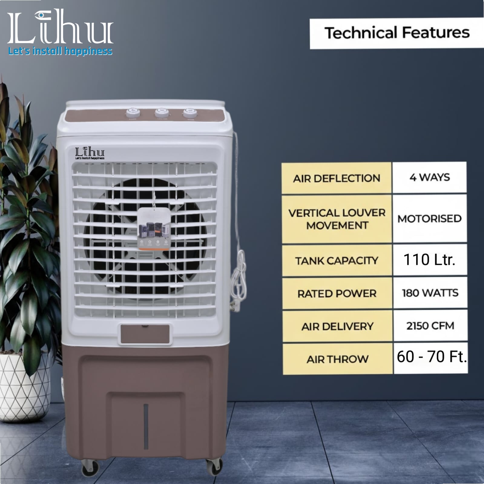 Great value for money. For a 110L cooler, the footprint isn't too huge, and it cools down the room within 10 minutes. Build quality feels premium.