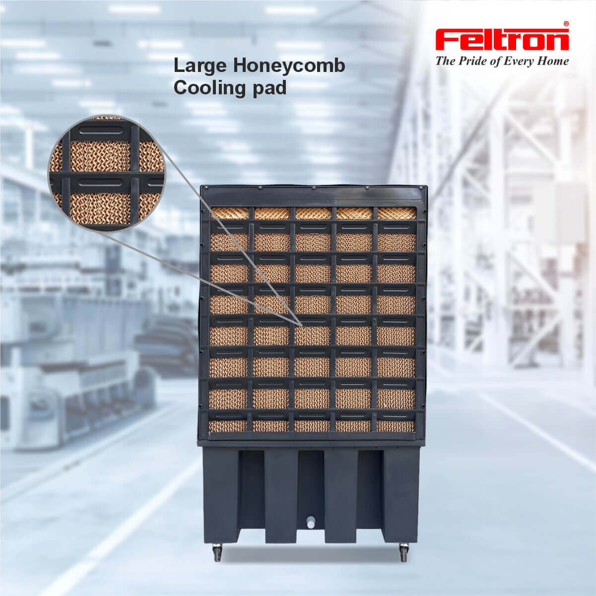 We use the Turbocool Plus in our office hall, and the air throw is very powerful. The large tank capacity is a huge plus for long working hours. It’s built like a tank and looks very professional. Excellent value for money from Feltron.